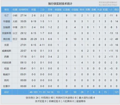 再看看独行侠这边,弗拉格打出了生涯最强一战:出战38分06秒,投篮29中20,三分5中3,罚球6中6,狂轰49分10篮板3助攻1盖帽2失误。单场49分不仅是弗拉格生涯最高,也是NBA历史上所有20岁以下球员的单场得分纪录。